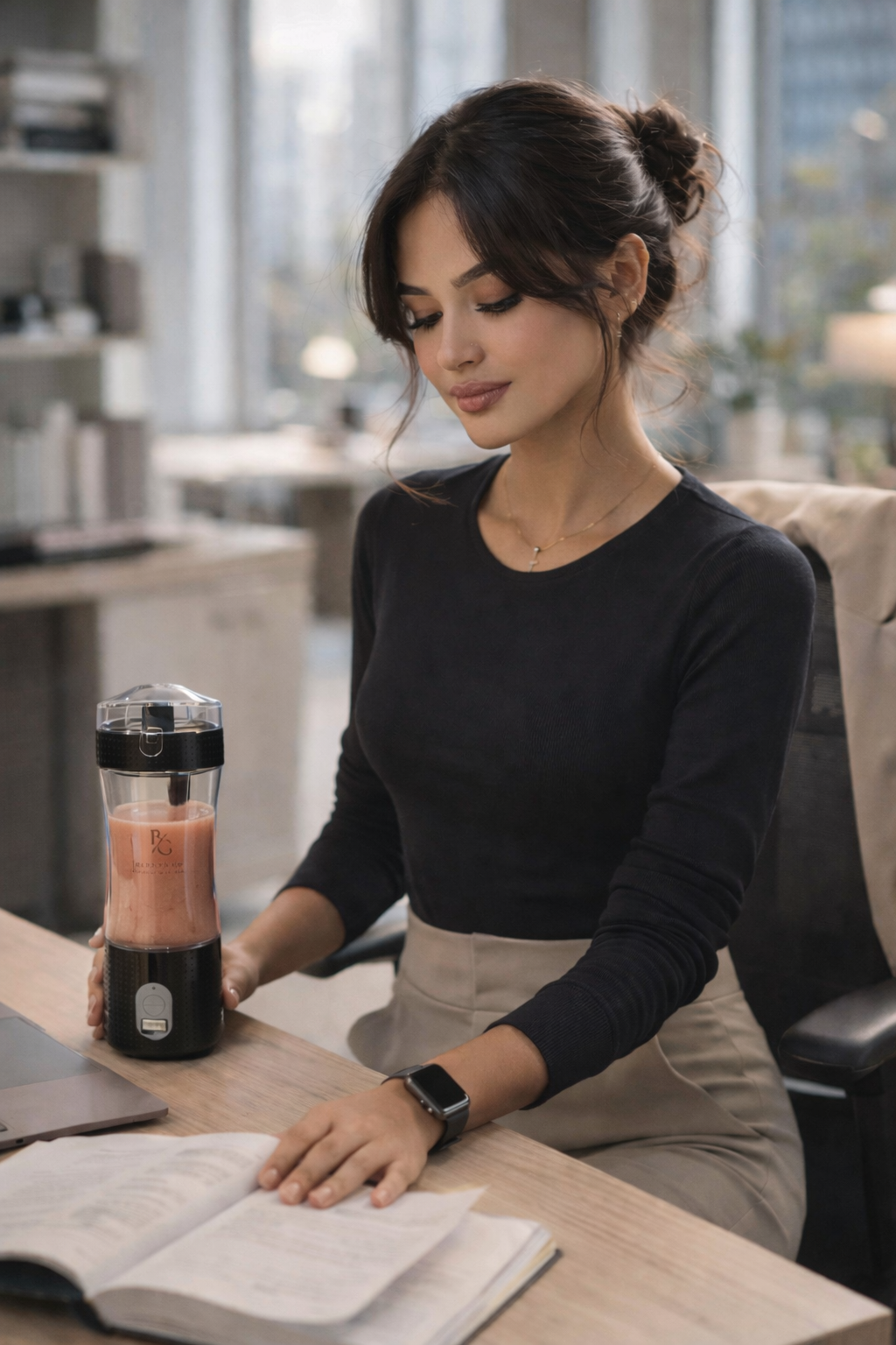 Compact, puissant et rechargeable. Préparez vos smoothies, shakes et jus frais en quelques secondes, à la maison, au bureau ou en déplacement.